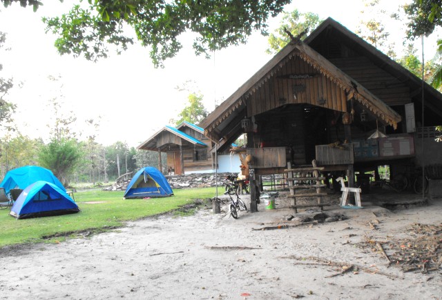 กลุ่มของเราเลือกที่จะนอนเต้นท์ส่วนหนึ่ง และอีกกลุ่มหนึ่งเลือกนอนบนเรือนไม้ ต่างก็จัดแจงหิ้วข้าวของลงจากรถเพื่อจัดที่หลับที่นอนของตัวเอง หลังจากกางเต้นท์แล้ว เราก็นั่งรถเข้าไปในตัวตลาดที่ห่างออกไปประมาณ 2 กิโลเมตร แวะซื้อกับข้าวพื้นเมืองมาทานกัน อาจารย์ยกห้องครัวให้คณะของเราประกอบอาหาร ส่วนอาจารย์ก็ไปตัดลูกขนุนผลโตมาให้เราได้ทานกันมื้อเย็นด้วย กลิ่นขนุนหอมโชยมาไม่แพ้กลิ่นกับข้าวมากมายที่เราซื้อมาจากตลาด กุ้งแม่น้ำย่างไฟกรุ่นถูกตักใส่จาน แล้วเอามาวางกันกลางลาน ปูเสื่อนั่งล้อมวง ‘ฉันห่างหายชีวิตแบบนี้ไปนานมากเท่าไหร่แล้วหนอ’ พวกเรานั่งกินข้าวไป พร้อมกับฟังเรื่องเล่าจากอาจารย์ ที่มีมากมายให้ฟังได้ไม่เบื่อ